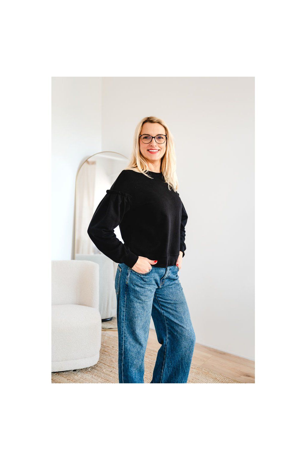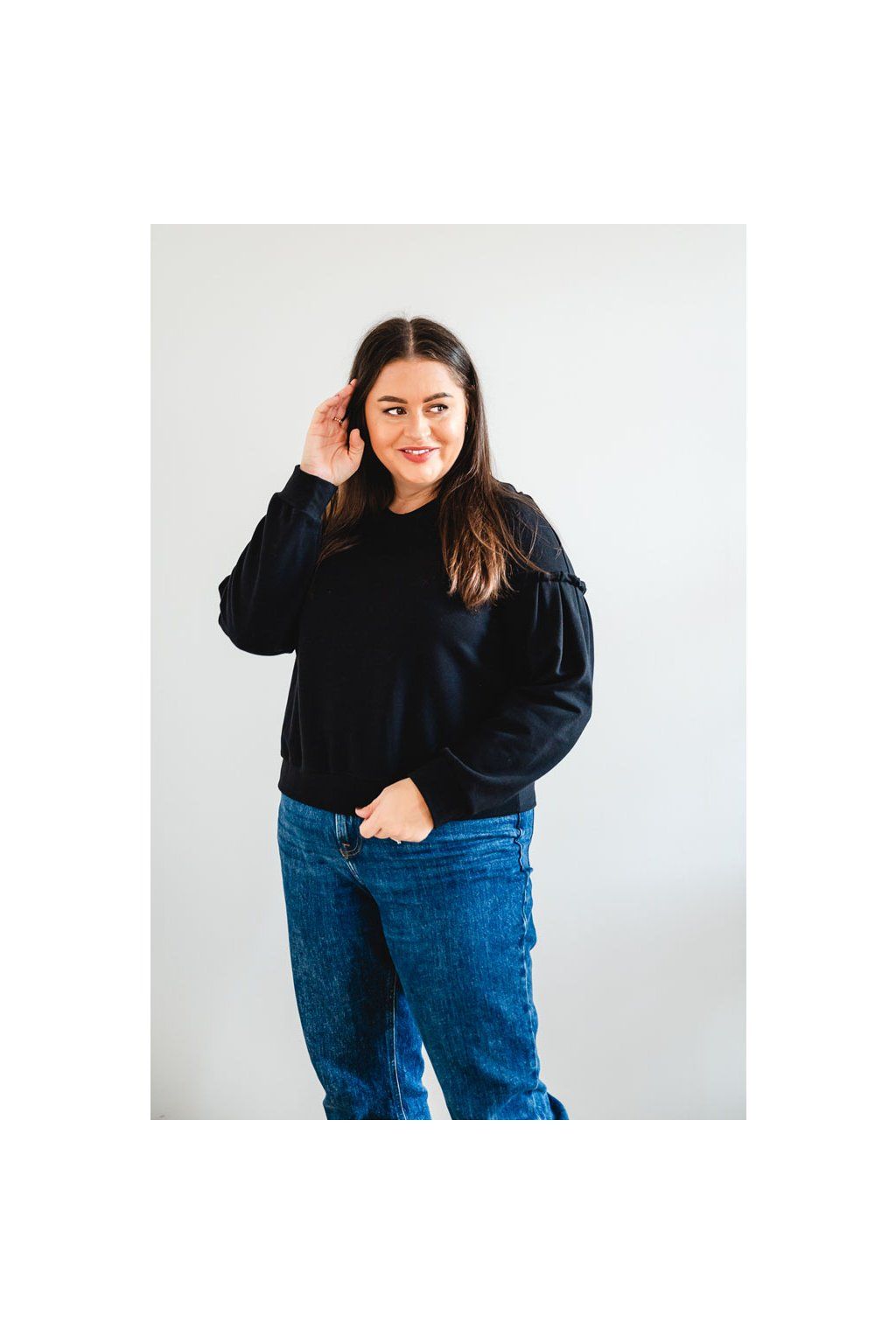 Krátká mikina volného střihu s originálními detaily na rukávech