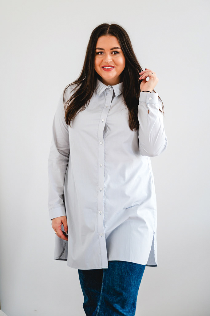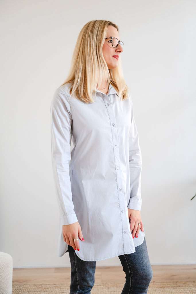 Dámská bavlněná košile POPLIN s řasením světle šedá
