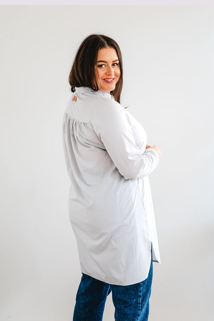 - řasení na zádech také podtrhuje ženskou siluetu a dodává košili unikátní charakter
