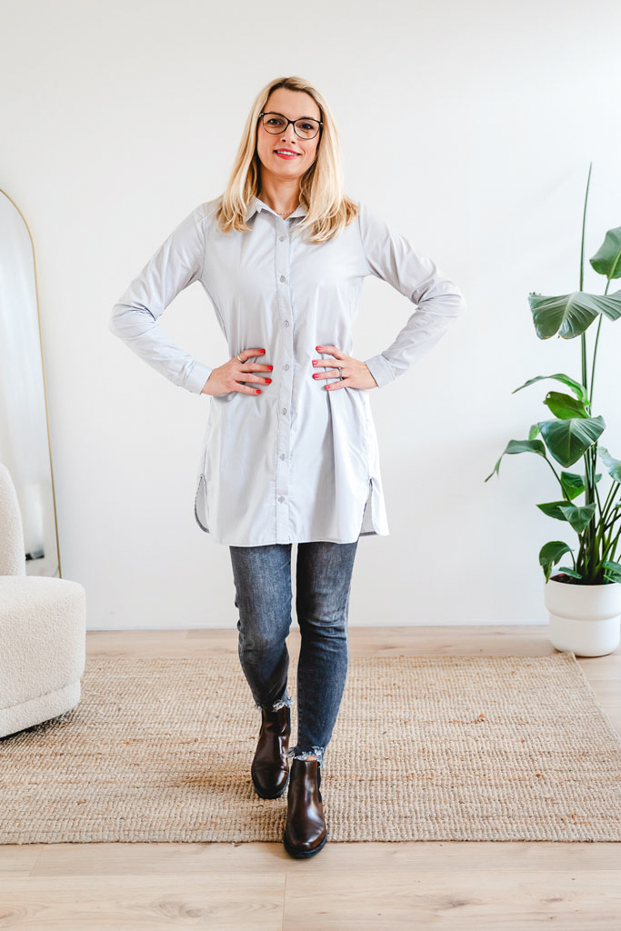Naše košile z bavlněného popelínu s řasením na zádech je dokonalým spojením komfortu a stylu. Vyzkoušejte ji a objevte, jak skvěle může vypadat klasická elegance s moderním nádechem.