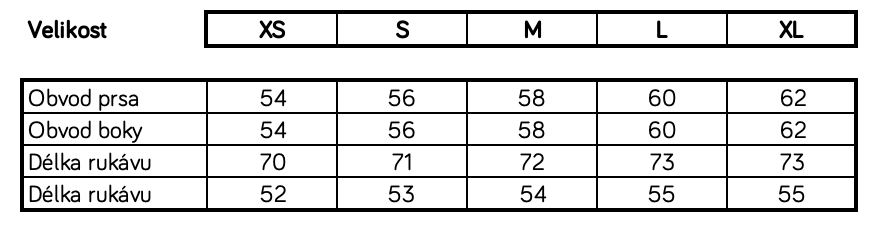 | Velikost | XS, S, M, L, XL |