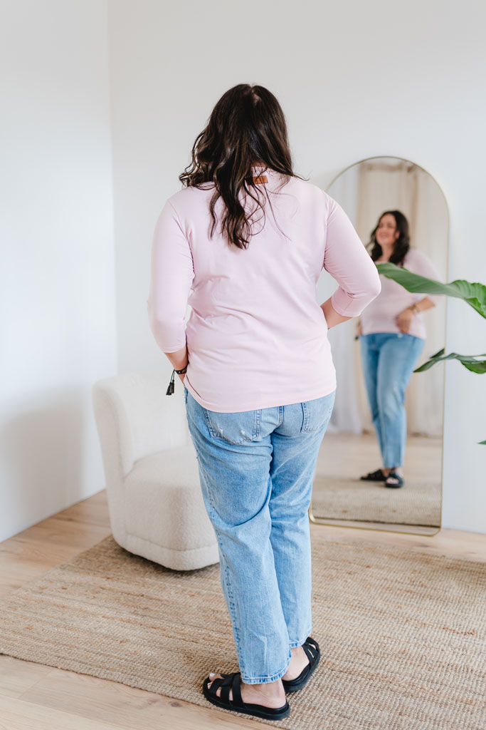 Tričko BASIC s kulatým výstřihem a 3/4 rukávem z jemné bavlny.