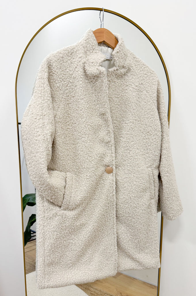 Kabát zaujme krásně propracovanými detaily – praktickými kapsami a jediným ozdobným knoflíkem, který působí jako elegantní šperk a dodává modelu jedinečný charakter.