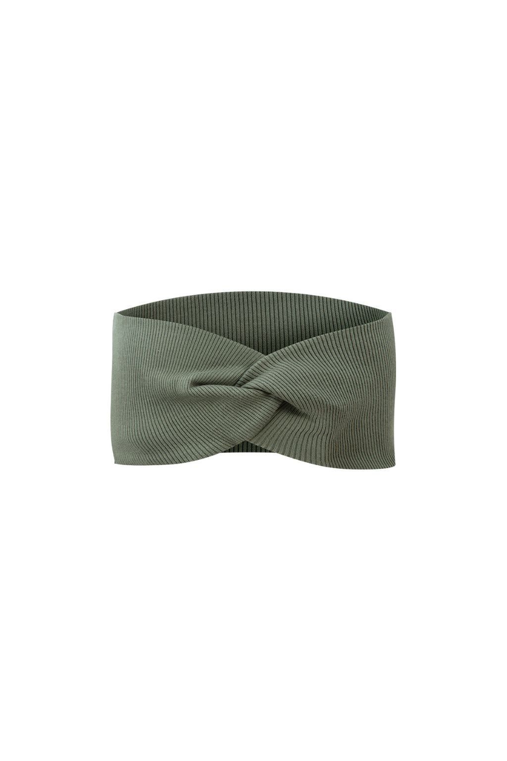 Luxusní žebrovaná čelenka se zajímavým křížením a nádherné khaki barvě.