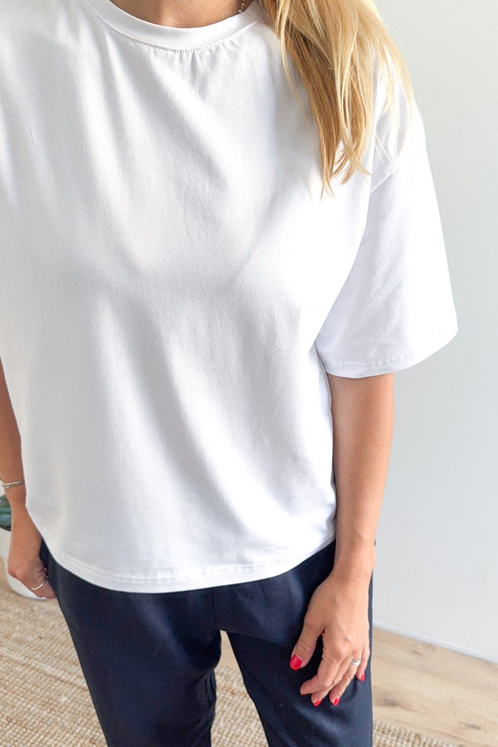Tričko OVERSIZE volného střihu. Je vyrobeno z jemné bavlny a je ideální nejen na léto, ale můžete ho nosit celoročně. Je ideální k sukni, kraťasům i džínům.